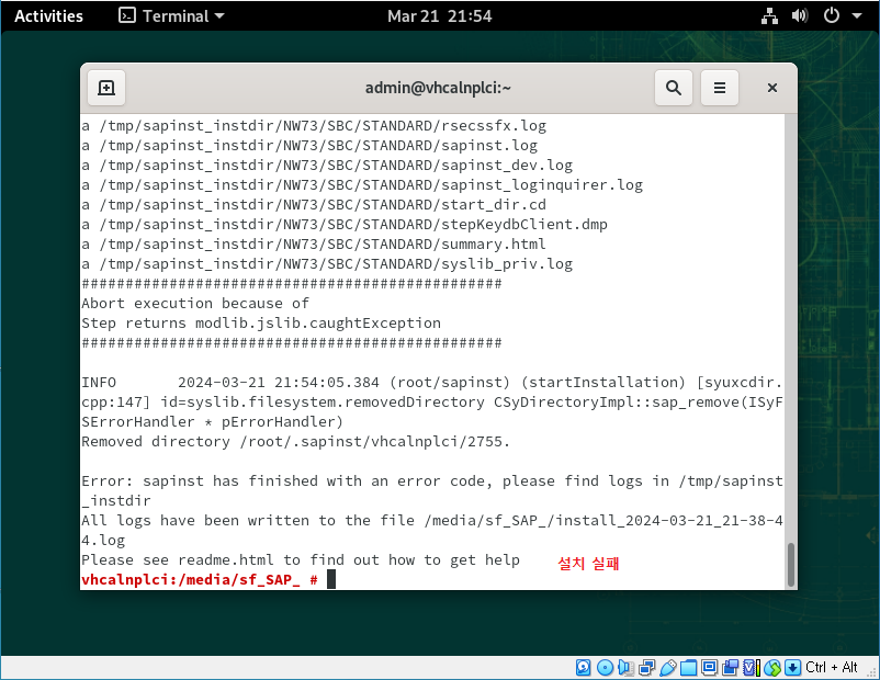 만약 위와 같은 화면이 나타나 설치가 실패했다면 이 경우 라이센스 관련한 문제에요.